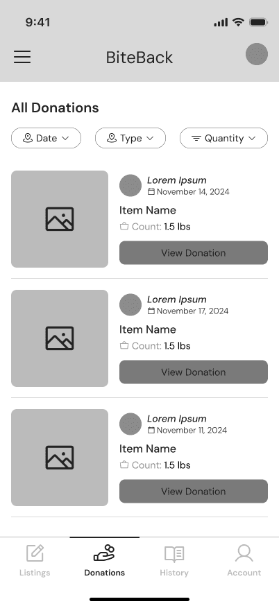 Vanya and Stella’s needs were clear—speed for her, simplicity for her. We began with sketches, rough outlines on paper: a claim button for Vanya, a donation list for Stella, and a space for them to connect. These early drafts captured the core ideas, setting the direction for what BiteBack could become.