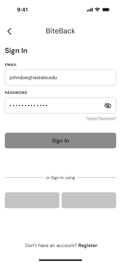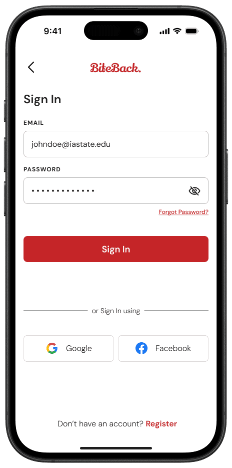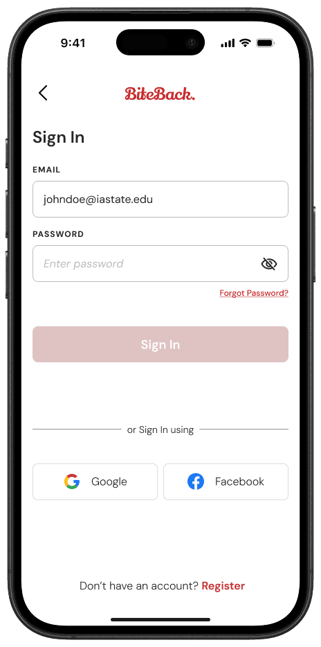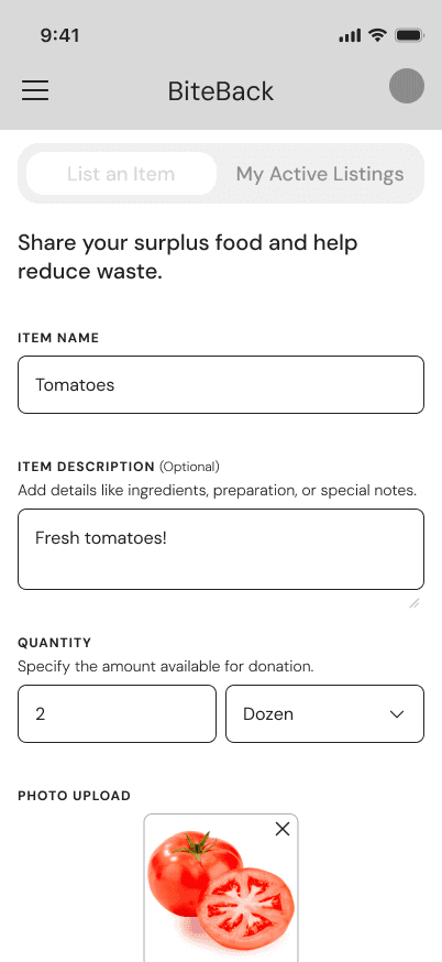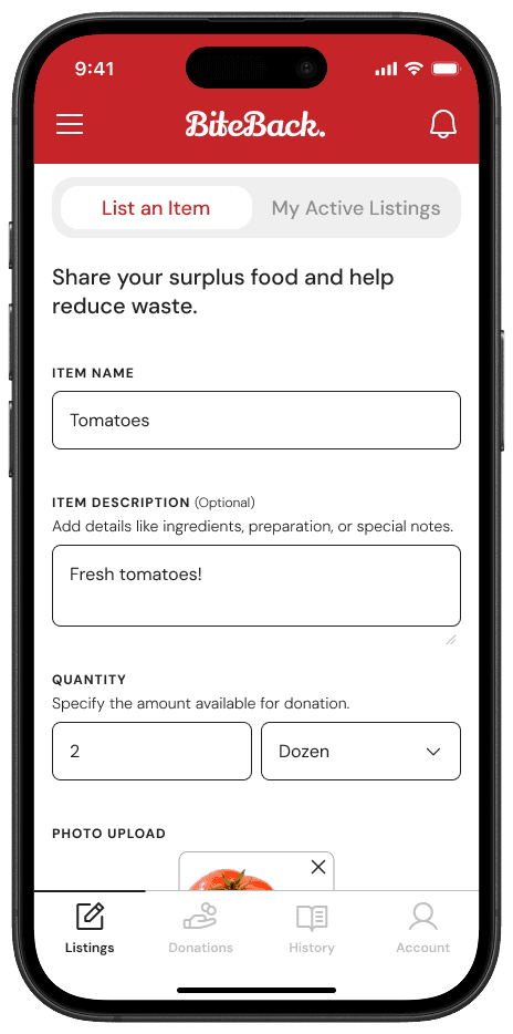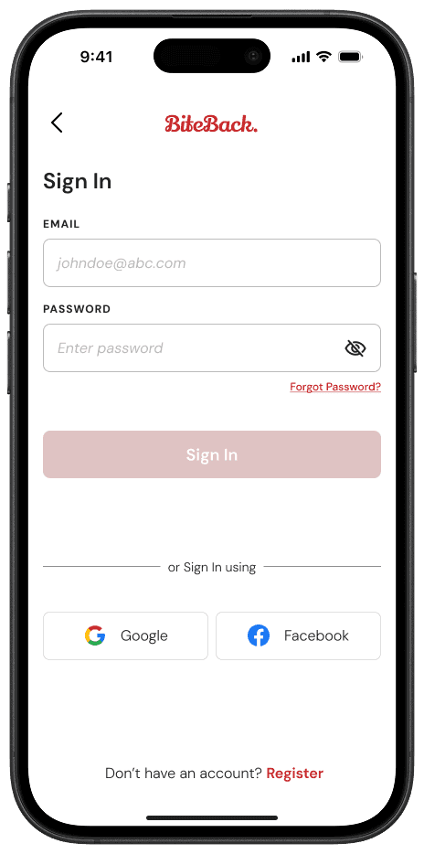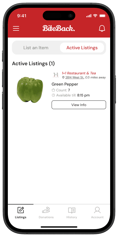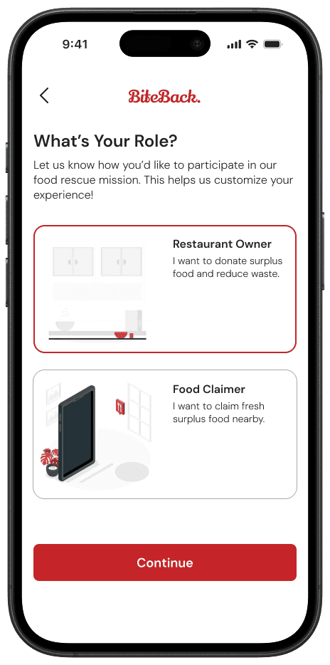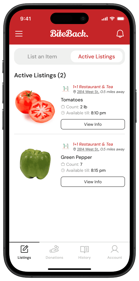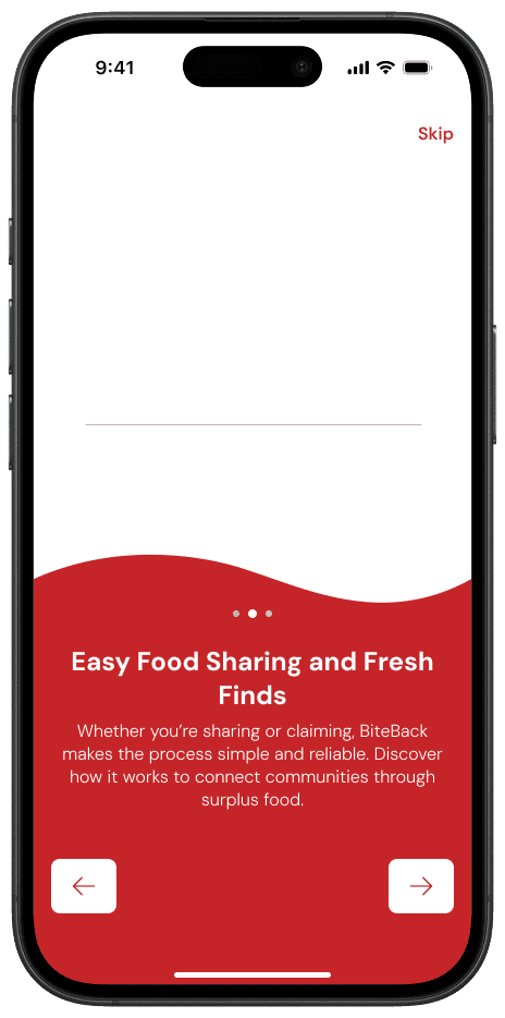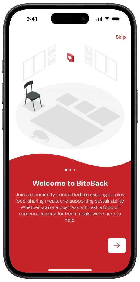 BiteBack is a mobile platform designed to reduce food waste and promote food security by connecting restaurants with surplus food to individuals and organizations in need. The app enables businesses to list excess food, while users can locate and claim it in real-time.