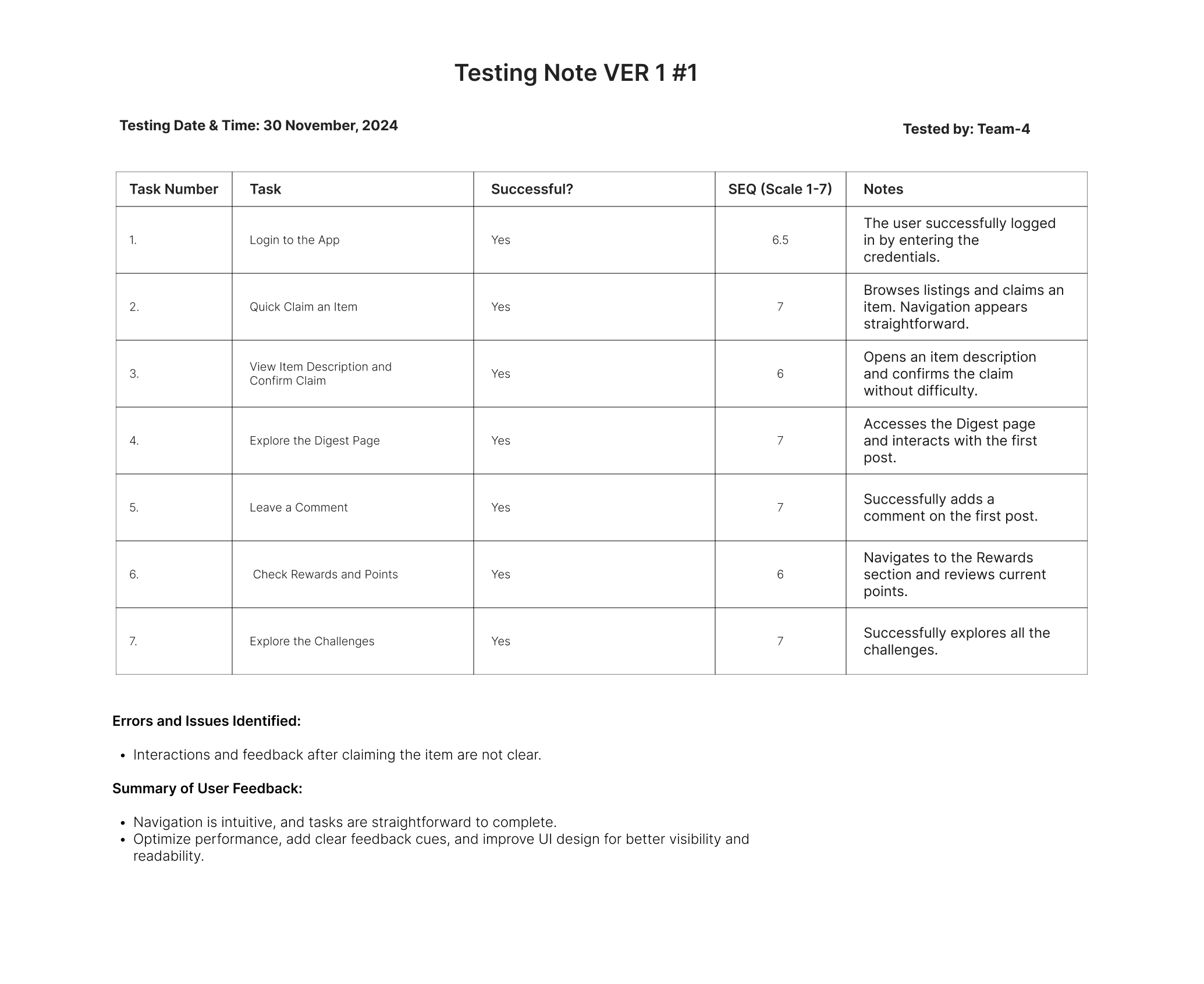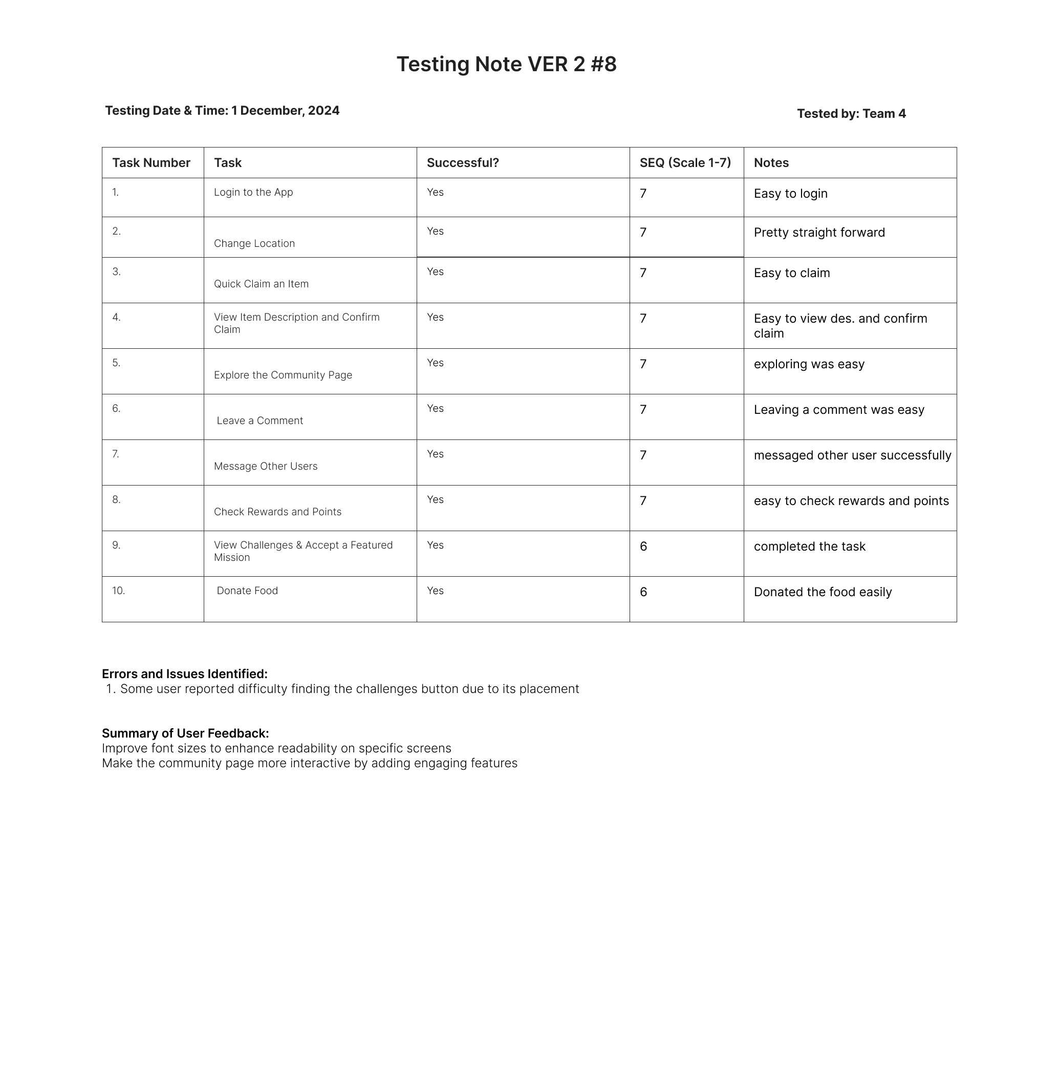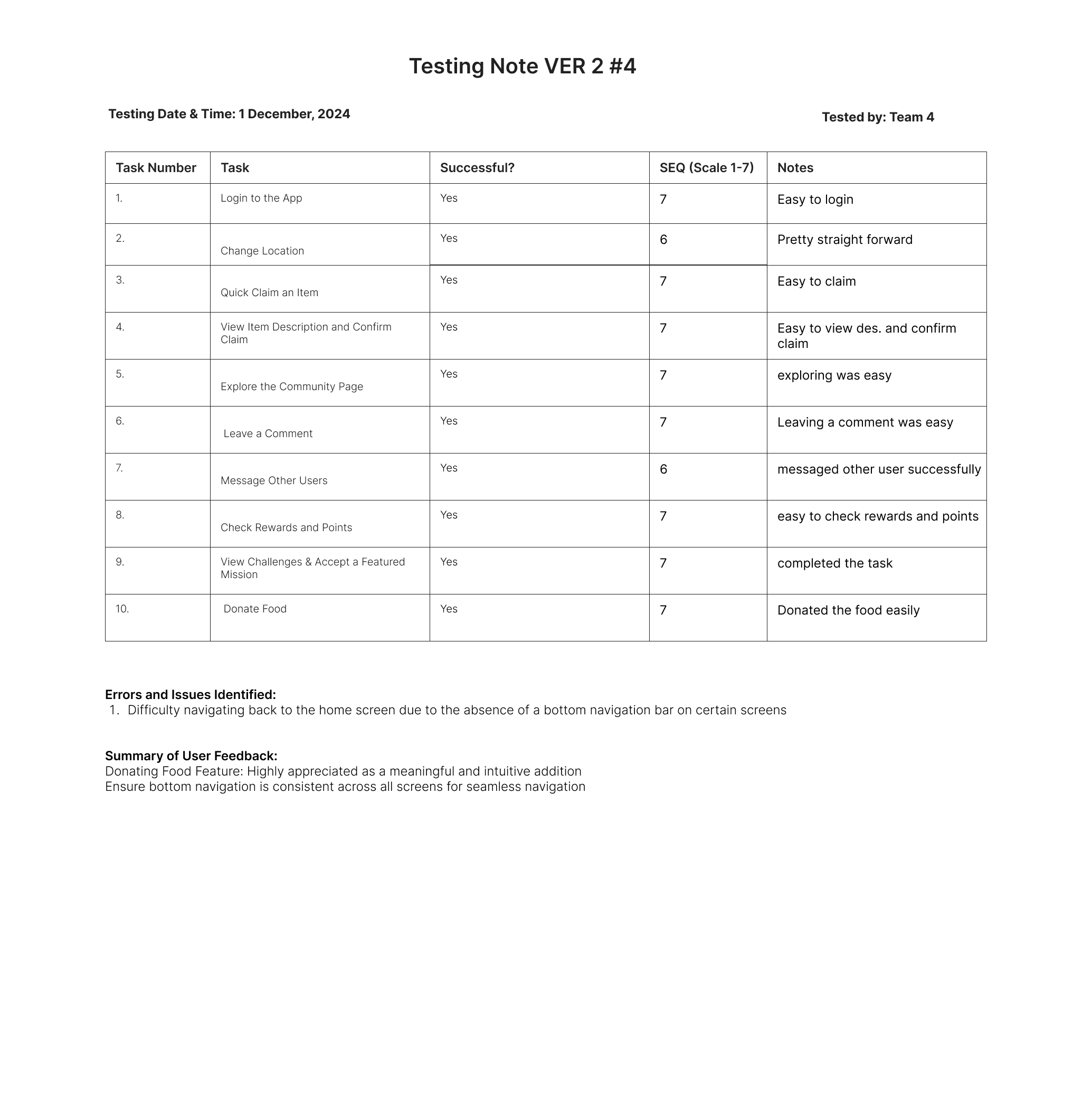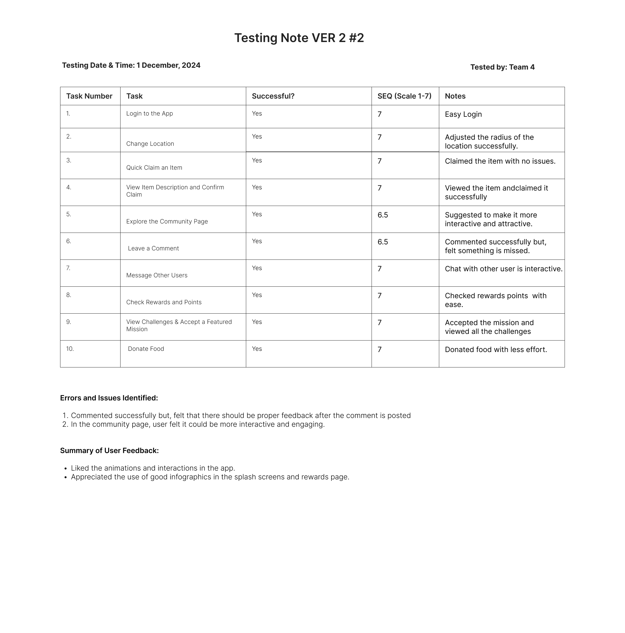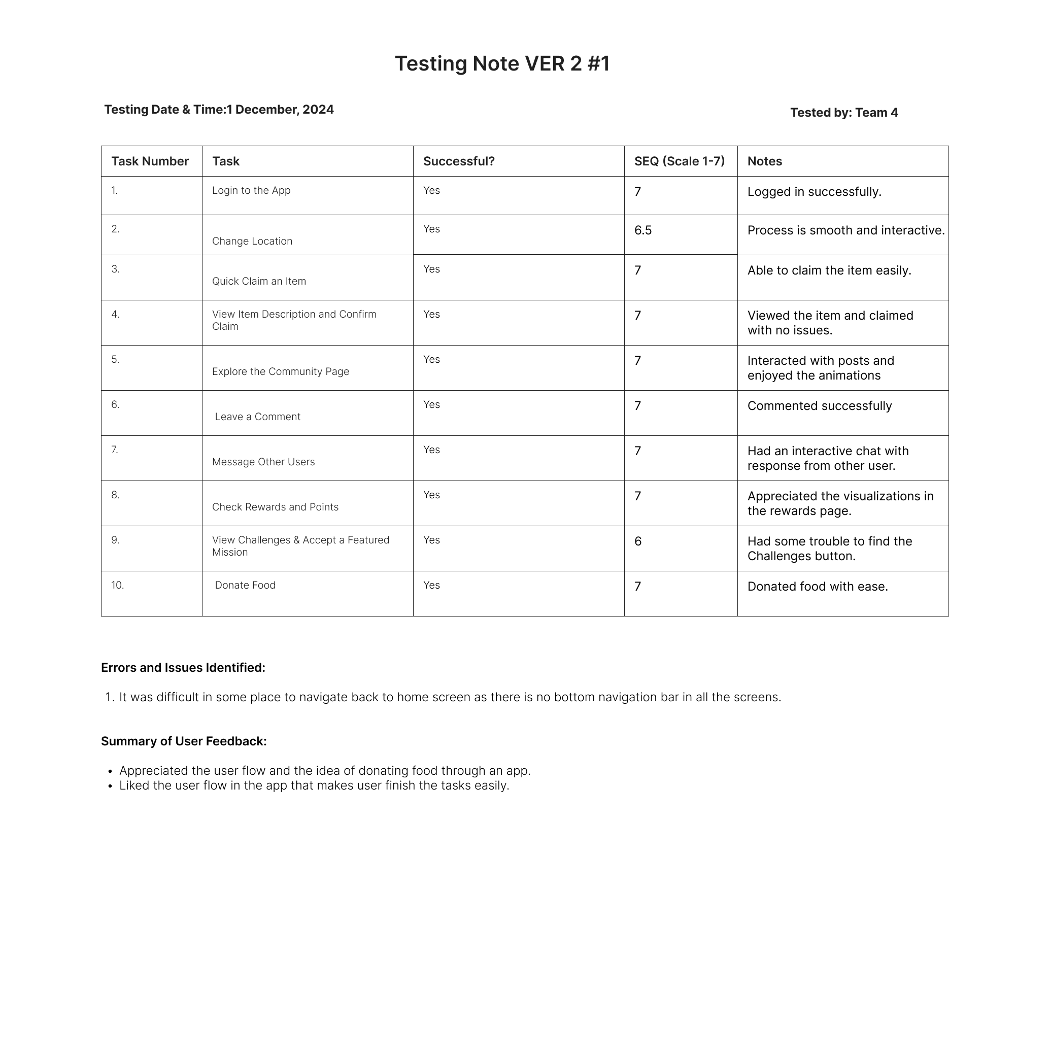 To validate the improvements, usability testing was conducted for Version 2, focusing on the newly introduced features and enhancements.