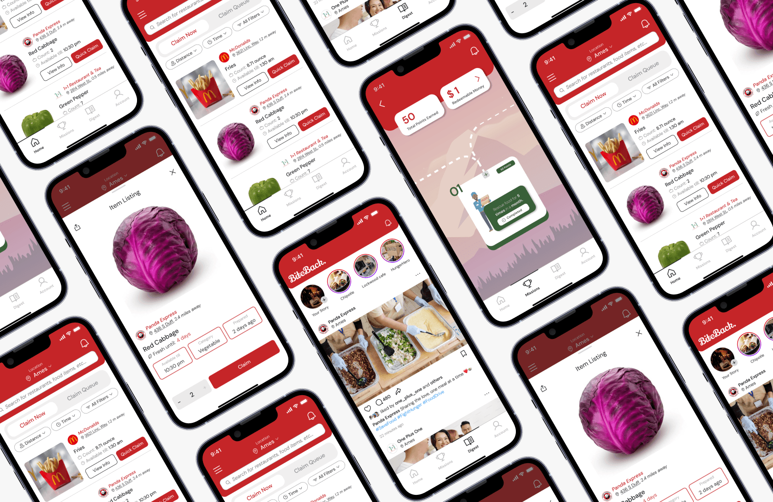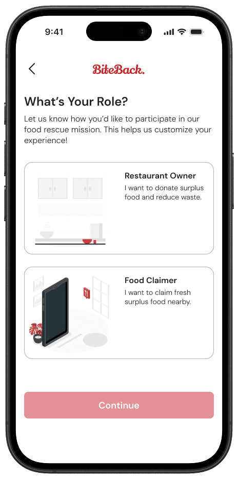 BiteBack is a mobile platform designed to reduce food waste by connecting restaurants with surplus food to individuals and organizations in need. Developed as part of a UX-focused class project, Version 1, which I led, introduced a community-driven experience with features like surplus food listings, social engagement, and a rewards system. Usability testing revealed areas for improved navigation, engagement, and personalization, leading to Version 2 (developed collectively as a team), which refined key workflows. This case study explores the design evolution, user research insights, and the impact of UX decisions in making food rescue more accessible, intuitive, and rewarding.