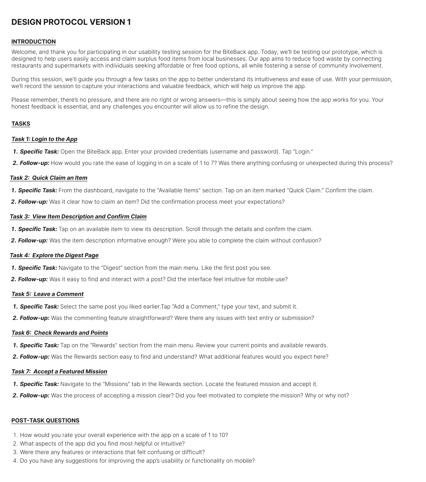 To evaluate the design further, we created design protocols for both Version 1 & Version 2.
