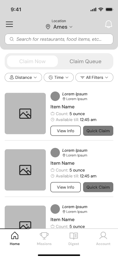 Next, We turned those sketches into lo-fi wireframes. Simple grids mapped Vanya’s path to finding food, Stella’s process for listing donations, and a community feature to link them. It wasn’t detailed—just the bones of the app, enough to test the flow and refine the concept.