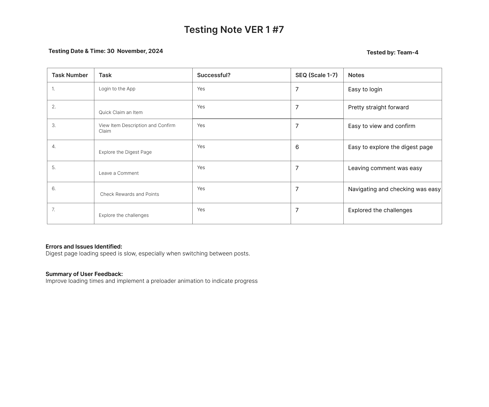 Version 1 Testing Insights