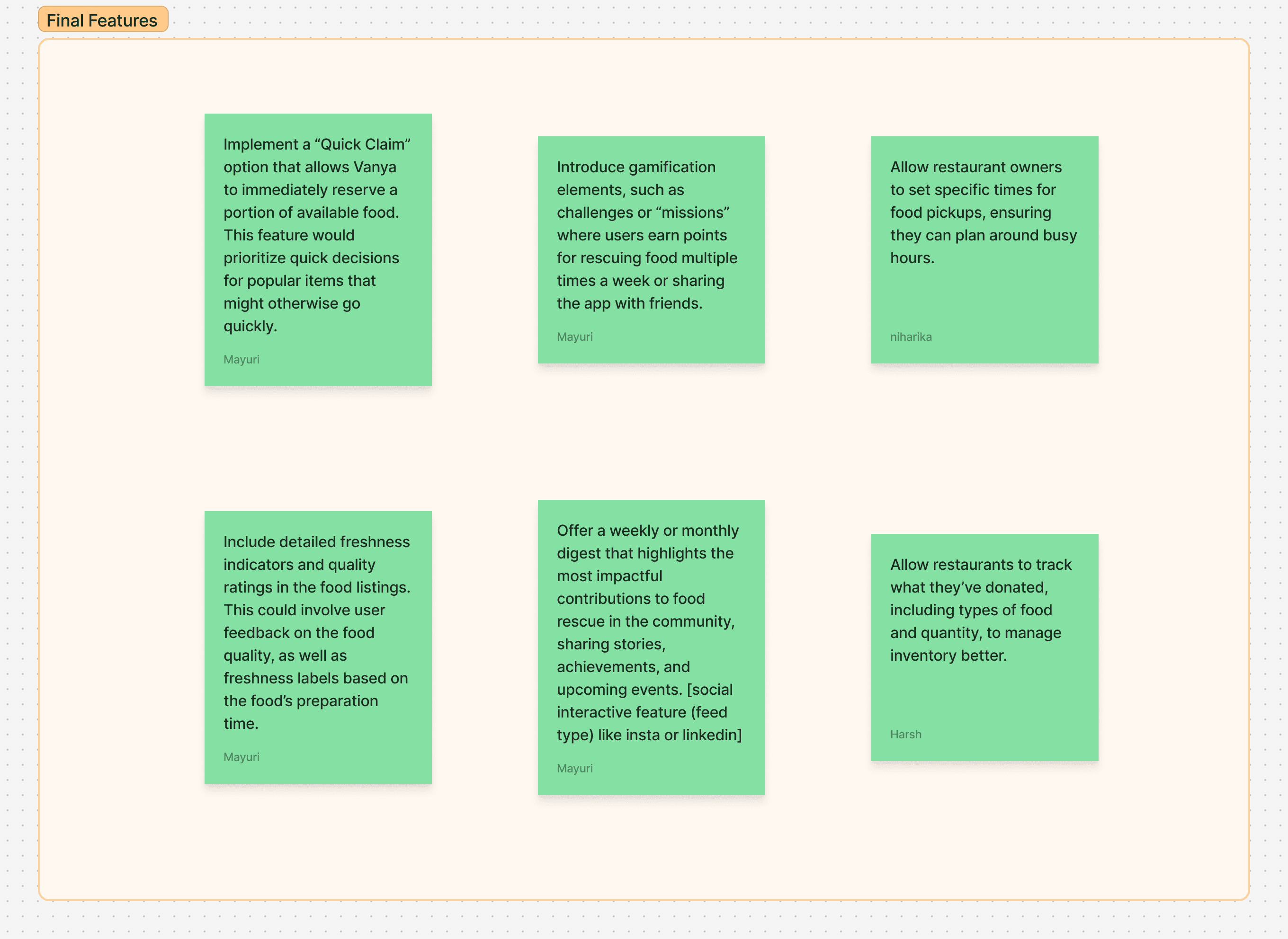 We tossed all those insights—filters, trust, logistics—onto a giant affinity map. Sticky notes flew: “Quick access” for Vanya, “Flexible pickups” for Stella. Patterns emerged—both craved transparency, like timestamps. Some ideas (overly tricky filters) got the boot, keeping it lean.