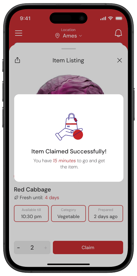 ✓ Designing core user flows (food donation, claiming food, and community engagement)