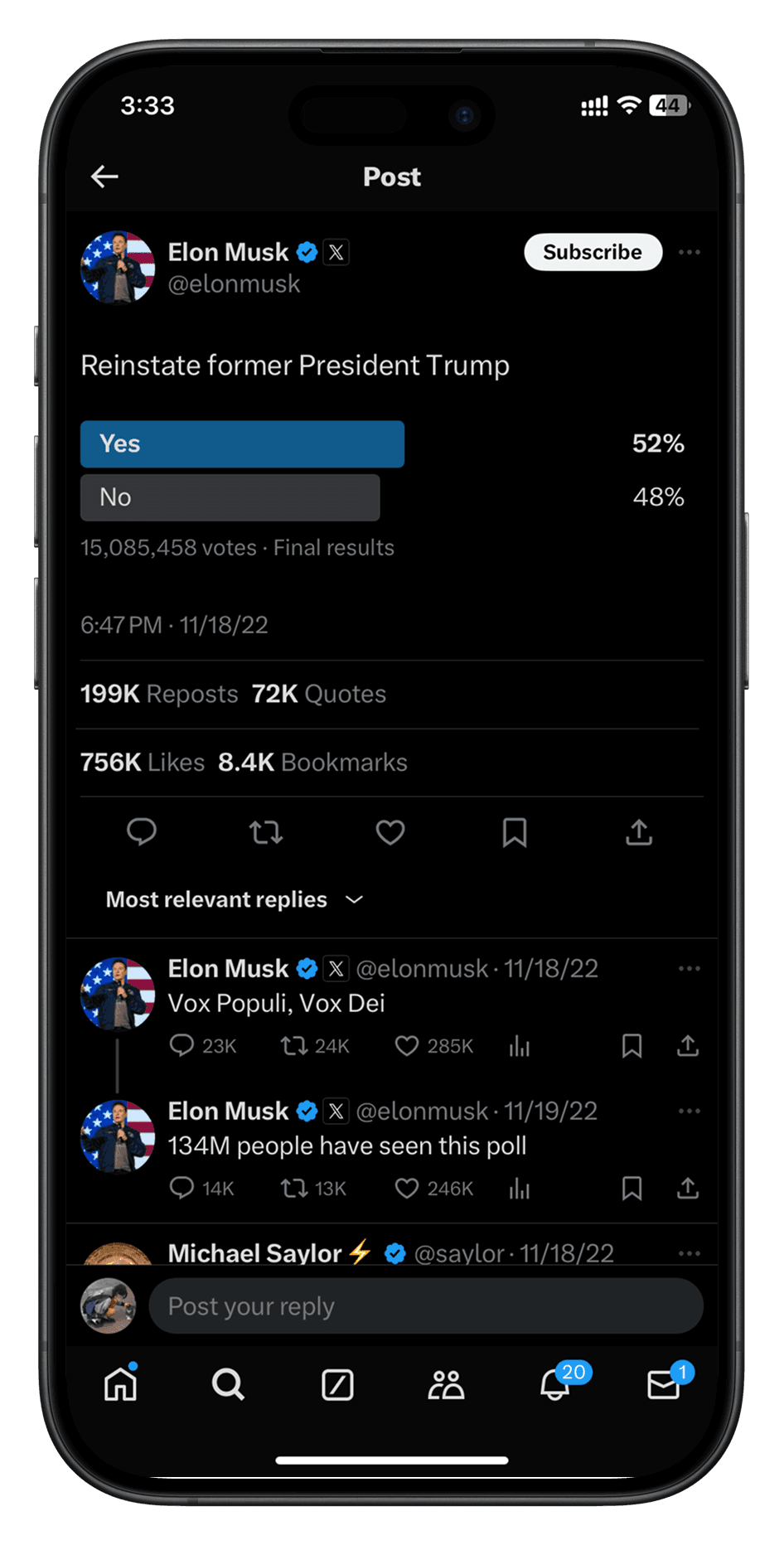 134 million people saw the poll, indicating how a simple voting mechanism can drive massive engagement and reach.