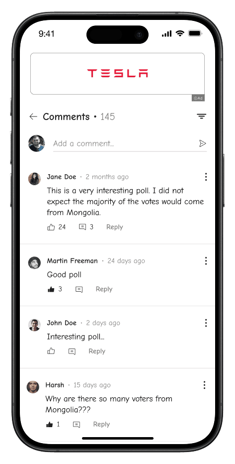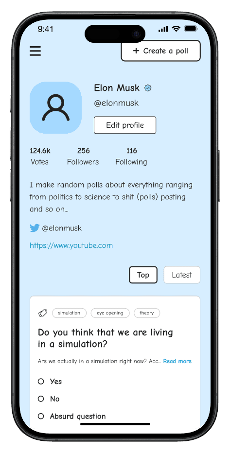 Currently, polling is an isolated feature on platforms like Twitter & Reddit, meaning there’s no discovery mechanism beyond direct sharing.