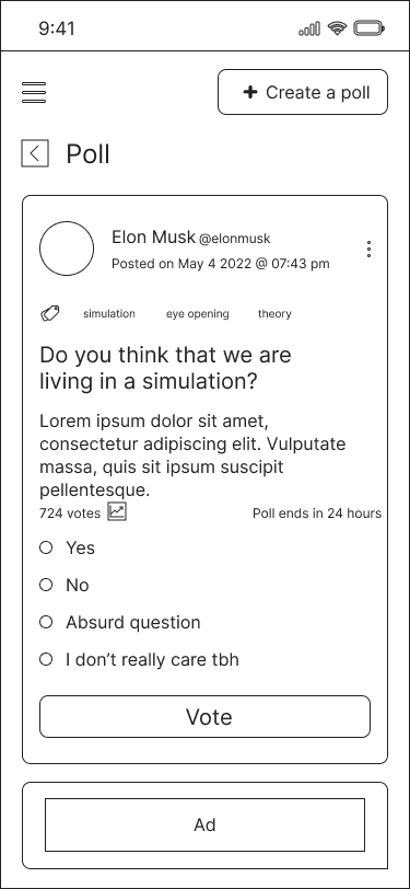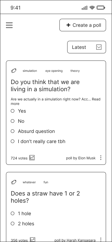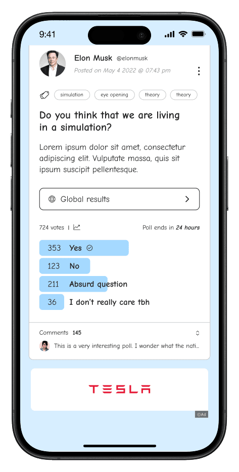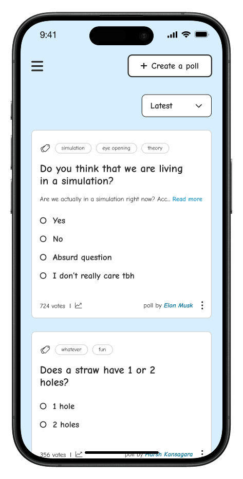 What if polls were an independent product? What if users could browse and engage with polls like a social feed? What if companies could leverage polls for actionable insights at a fraction of the cost of surveys?