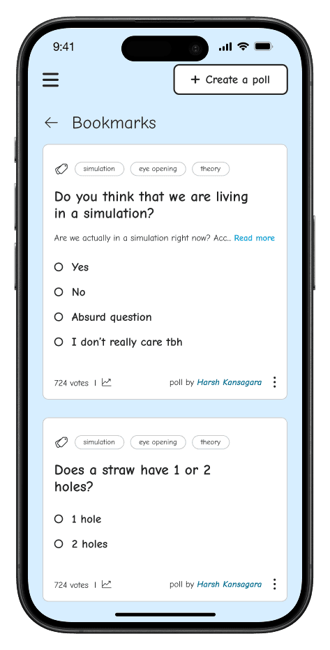 Users struggled with discovering past polls → We introduced a “Bookmarks” feature