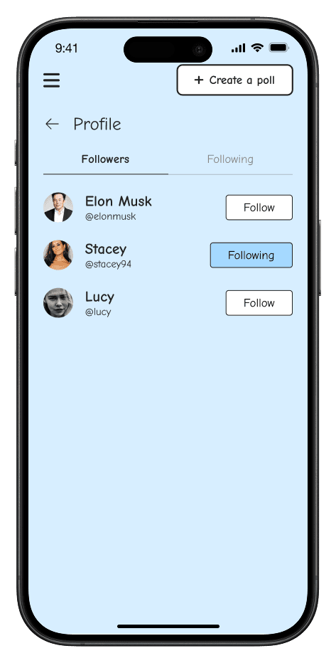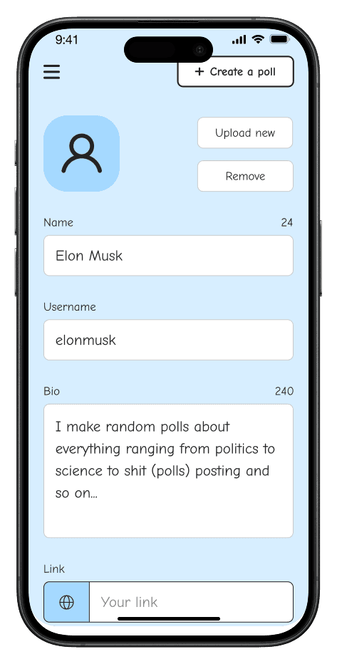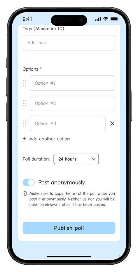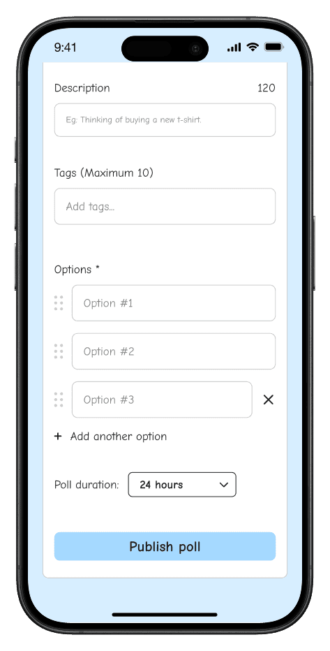 A simple, intuitive flow that allows users to create polls effortlessly in just a few taps.