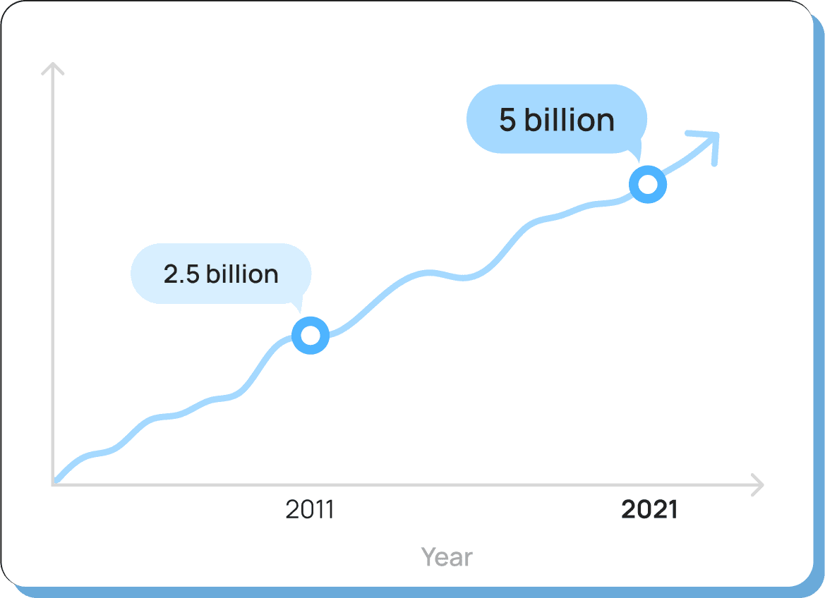 Internet users increased from 2.5 billion to 5 billion in the same period.