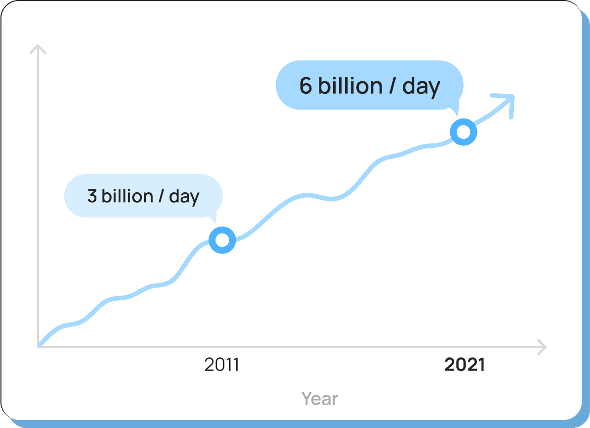 Google searches doubled from 3 billion per day to 6 billion per day.