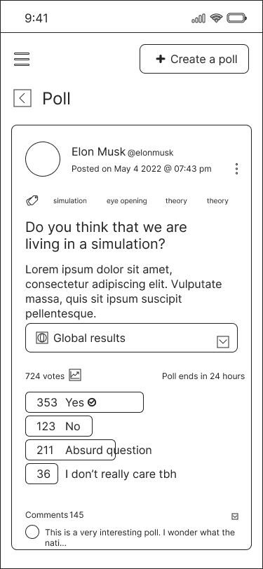 Prototype showcasing the final version we chose for image polls.