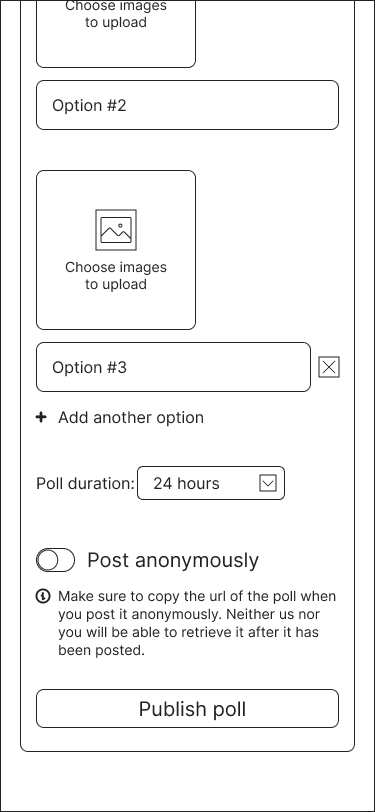 Finally, we refined the feature further to optimize it for mobile, ensuring a seamless experience across devices. The final version of image polls was adapted to a more responsive, mobile-friendly format, balancing usability with aesthetic appeal.